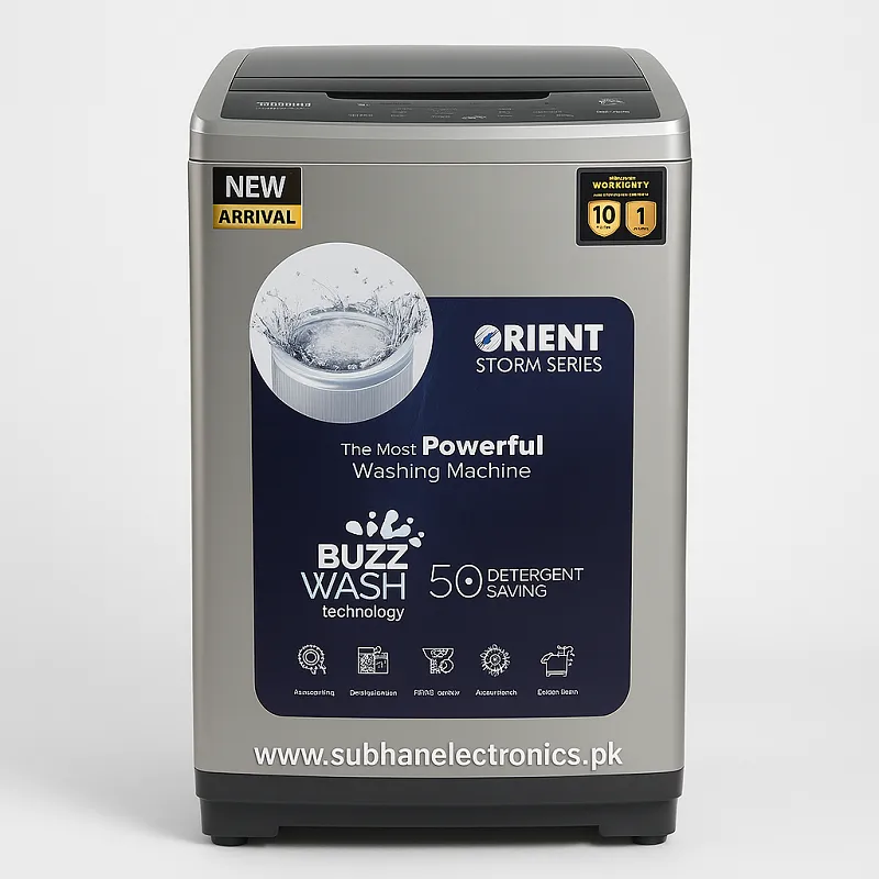 Orient 12 Kg Top Load Automatic Washing Machine 1350 STORM is one of our top-selling items, trusted and loved by customers all over Pakistan. Renowned for its excellent build quality and reliable performance, it?s the perfect addition to your home or office. Order now and enjoy fast delivery to your doorstep anywhere in Pakistan?only from https://selectronics.com.pk/, where we guarantee prompt service and the best prices nationwide.